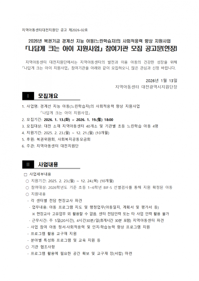 2026 나답게크는아이 참여기관 모집(연장)